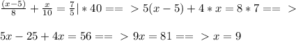 Поскольку нам нужен наименьшее целое положительное решение, мы берём число 5 (4 мы взять не можем, т.к. в знаменателе будет 0 и потому, что 4 не входит в получившиеся лучи).