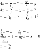 4x=\frac{y^2}7-y-\frac{3}y+7\\