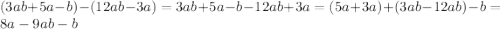 а) (3ab+5a-b)-(12ab-3a)=3ab+5a-b-12ab+3a=8a-9ab-b