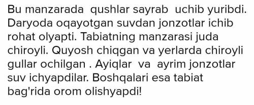 узб-яз 6-класс 39 стр. . 1-topshiriq. Rasmdan foydalanib, tabiat manzarasini tasvirlab bering.