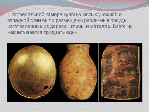 В 1970 году был обнаружен Золотой человек. Так же было найдено: сумочка с остатками охры, зеркальце, перстни, серьга, гривна, оружие, различные сосуды. Примерная дата захоронения IV–III в. до н. э.