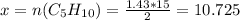 n(C5H10)=100/70=10/7 моль