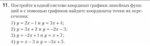 Построить графики линейных функций и найти координаты точки их пересечения: